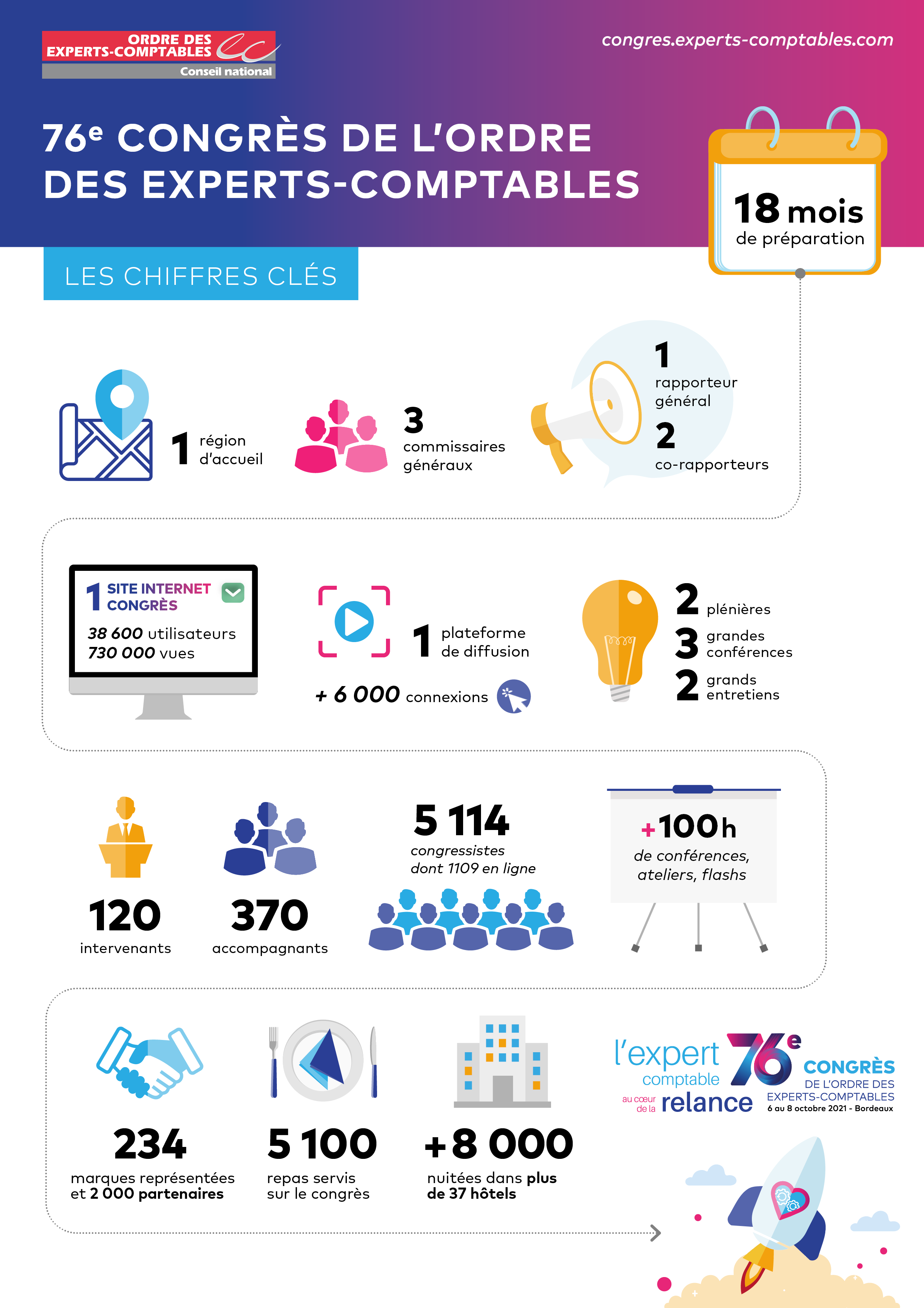 Evènement annuel majeur de la profession comptable française, le congrès a su s’imposer en France comme l’un des plus grands rassemblements de professionnels. Il est le rendez-vous incontournable de la profession.Le congrès allie des séances plénières politiques, des grandes conférences, des grands entretiens, des ateliers pédagogiques à forte valeur ajoutée, une exposition riche de services et d’outils lui permettant de satisfaire un large public ainsi que des évènements festifs.