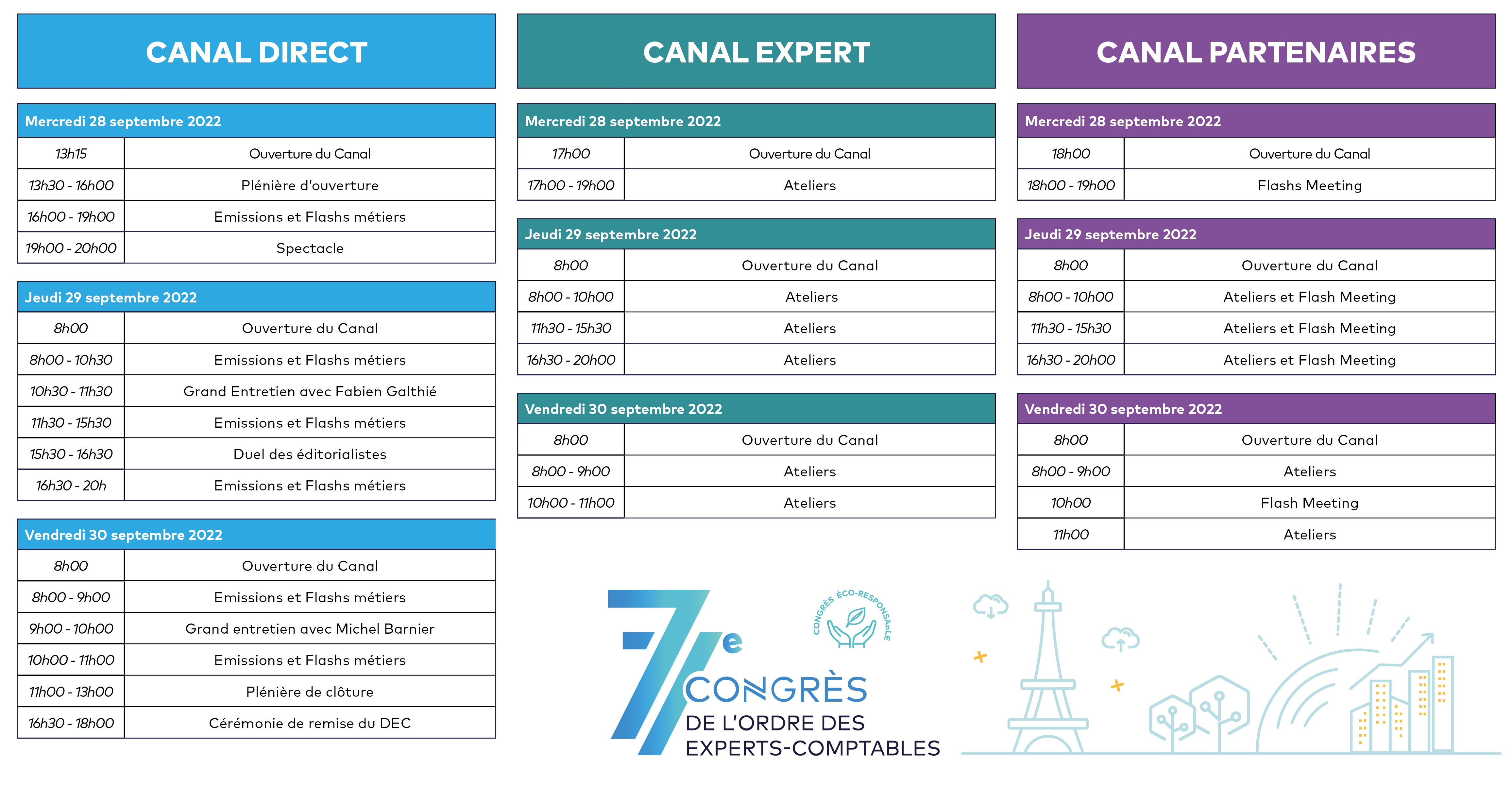 En vous connectant à la plateforme de diffusion, vous aurez accès pendant le Congrès aux trois canaux suivants :